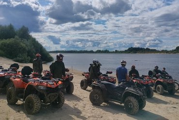 Мы проедем по красивейшим тропам по дикой природе. Вас ждут крутые спуски и подъёмы, поля и лесные просеки. Заедем на высокий откос и насладимся открывшимися видами. Для квадроциклов это проще простого. Проедем по дикому лесу, мимо озера по бескрайним полям. Спустимся к песчаному пляжу, где можно посмотреть закат и искупаться. По маршруту будут участки для эстетического наслаждения видами и будут участки, где можно порезвиться. Маршрут отлично подходит для семейных катаний, прогулок с друзьями и любимыми. Маршрут не проходит, когда лежит глубокий снег.